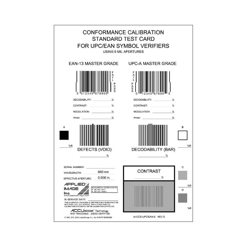 98-CAL040-01 Conformance calibration standard test card for UPC/EAN, ISO -15416:2025, UNDATED