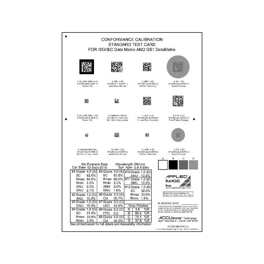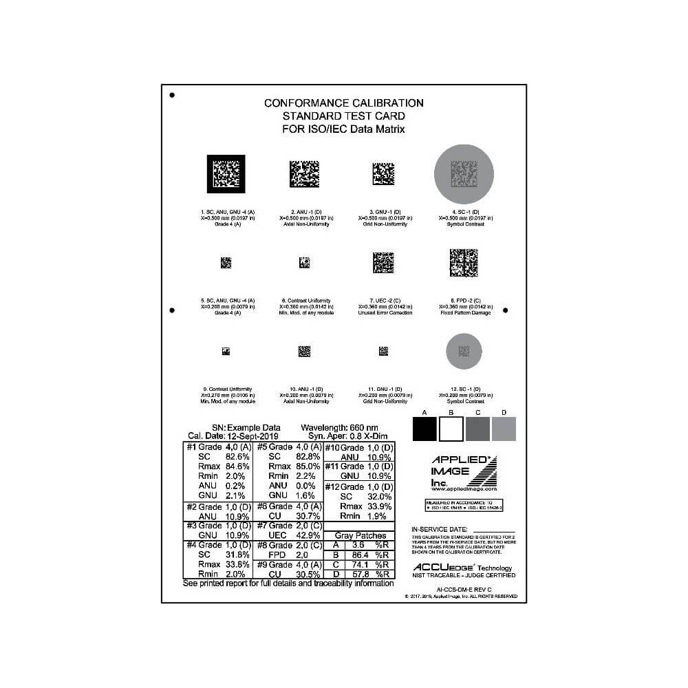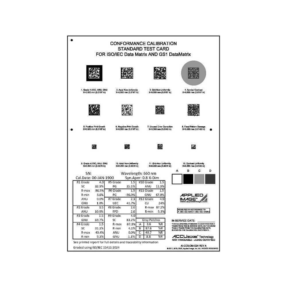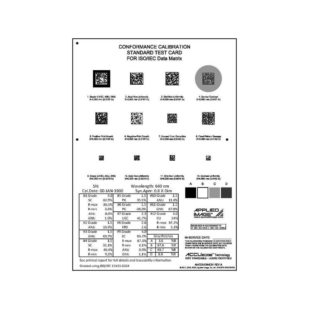 98-CAL043-01 Conformance calibration standard test card for ISO/GS1 Datamatrix, ISO -15415:2024, UNDATED